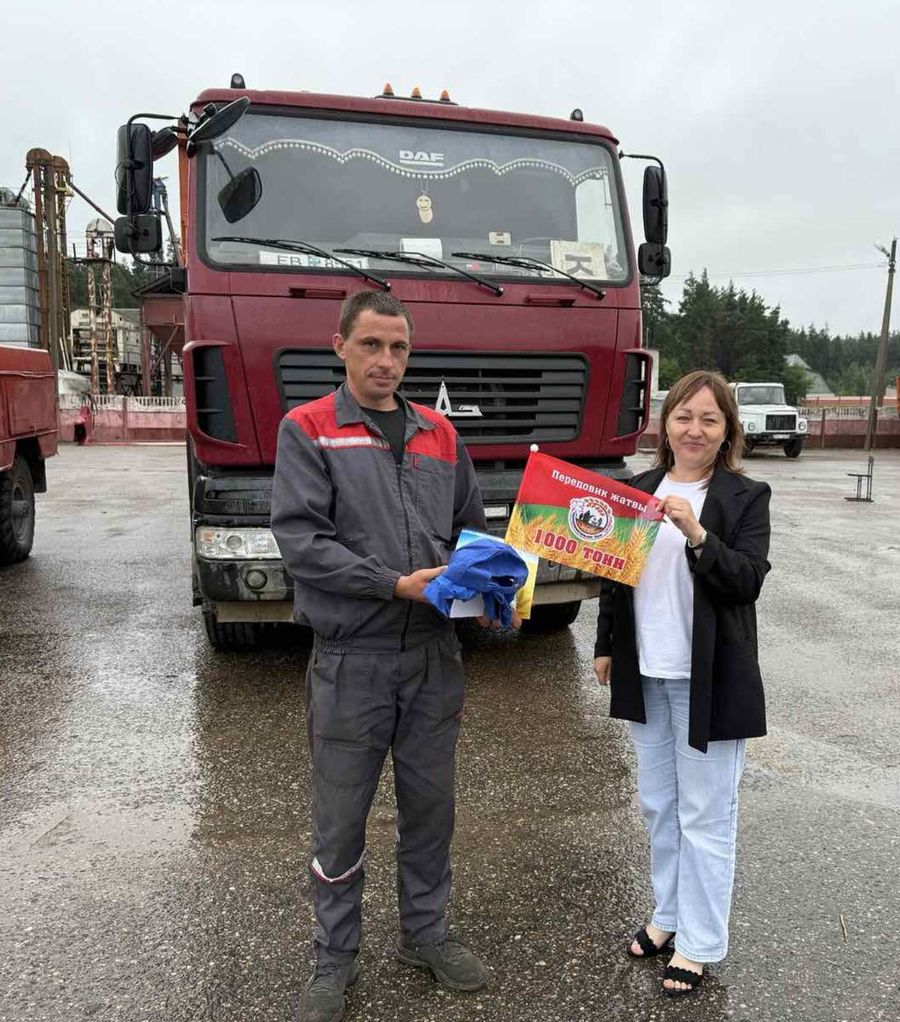 Заветную тысячу тонн зерна перевезли Генрих Марьянович Балинский из КСУП э/б "Погородно" и молодой водитель Виталий Иванович Кель из КСУП э/б "Октябрь".
