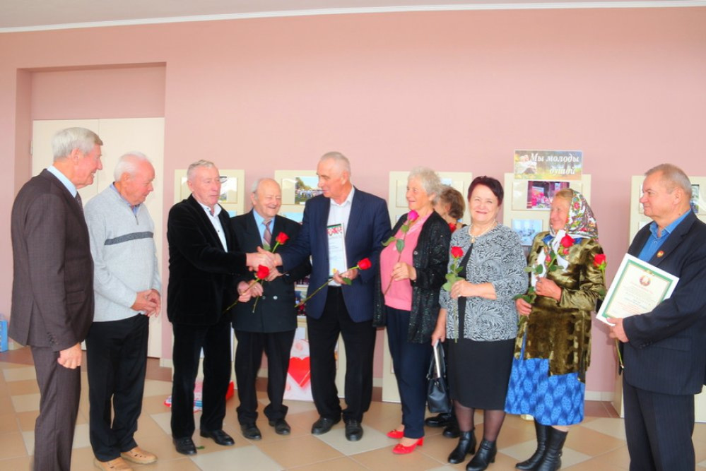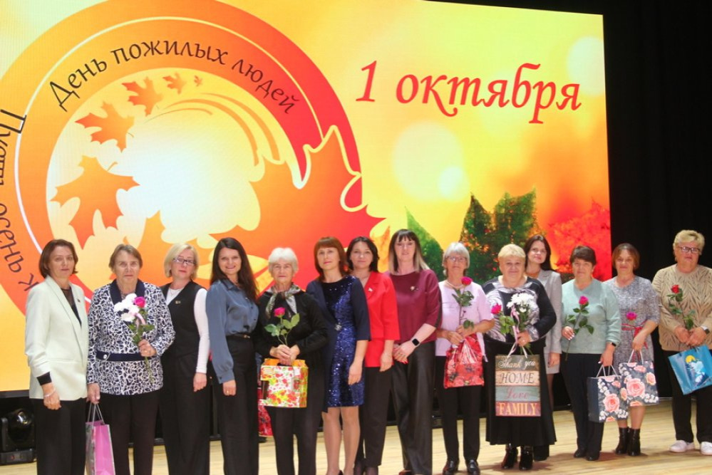Осень года в какой-то мере отожествляется с осенью жизни. Но золотая осенняя пора, особенно первая декада октября, для зельвенцев золотого возраста – время праздника, поздравлений, признаний и благодарностей за их трудовой путь, профессиональные достижения, наставничество и пример. Одно из главных торжеств для старших граждан Зельвенщины состоялось в районном центре культуры и народного творчества. Здесь задолго до праздничной программы встретились бывшие коллеги, ветераны труда различных организаций и учреждений, знакомые, друзья. Благоприятная атмосфера содействовала эмоциональному обмену воспоминаниями и впечатлениями, которые появлялись в том числе и от выставок, расположенных в фойе. Яркие фото разместились на вернисаже, оформленном районным советом ветеранов. Интересные рисунки школьников впечатляли пожилых людей. Красивые сувениры, сделанные руками руководителей и посетителей кружков отделения обеспечения дневного пребывания для граждан пожилого возраста ЦСОН, привлекали внимание зрителей. Проявить интеллектуальные способности и повторить правила основ безопасности предлагали представители РОЧС, измерить давление и получить профилактический буклет – медицинские работники ЦРБ. – У каждого времени свои радости и краски, – поделились эмоциями представители филиала «Мижеречи». – Осень в природе богата своей щедростью, урожаями. В жизни зрелые годы – это добрые сердца и искренние чувства, которыми мы делимся с детьми и внуками, окружающими нас людьми. Сегодня, глядя на работы из бумажной лозы и природного материала, на фотоснимки, мы понимаем, как можно интересно разнообразить пенсионный досуг. Приветственные слова в адрес уважаемой аудитории со сцены звучали от заместителя председателя райисполкома Сергея Лойко, начальника управления по труду, занятости и социальной защите райисполкома Натальи Юркевич, председателя районного совета ветеранов Сергея Багана. – Вы – наше золотое богатство, – обращаясь к виновникам праздника, сказал Сергей Николаевич. – Вы заслуживаете слов благодарности, признания, так как в период трудовой деятельности много сделали для района и сейчас многие из вас активно поддерживают наши начинания. Пусть через всю декаду «Золотой возраст» пройдет мотив добра, уважения, хорошего настроения! Приятным моментом торжества стало чествование уважаемых в коллективах ветеранов труда, которые, будучи на заслуженном отдыхе, занимают активную жизненную позицию и участвуют в общественной жизни района. Подарок от районной организации республиканского общественного объединения «Белая Русь» был вручен лидеру ветеранского движения Сергею Багану. Ценными сувенирами отмечены председатель первичной ветеранской организации райисполкома Мария Заяц, ветеран труда управления по труду, занятости и социальной защите райисполкома Евгения Гончаренко, ветераны труда центра социального обслуживания населения Зельвенского района Елена Евдокимова и Мария Куколович. Председатель райкома профсоюза работников государственных и других учреждений Инна Талерчик наградила Татьяну Мананникову и Чеслава Зубелевича. Председатель райкома профсоюза работников АПК Валерий Парфенчик поблагодарил активистов, в числе которых Николай Януль, Лидия Щилик, Александр Предко, Владимир Лешкевич. Предсе