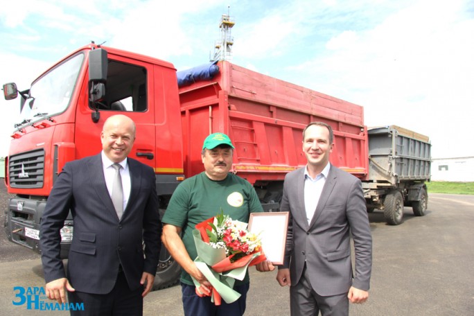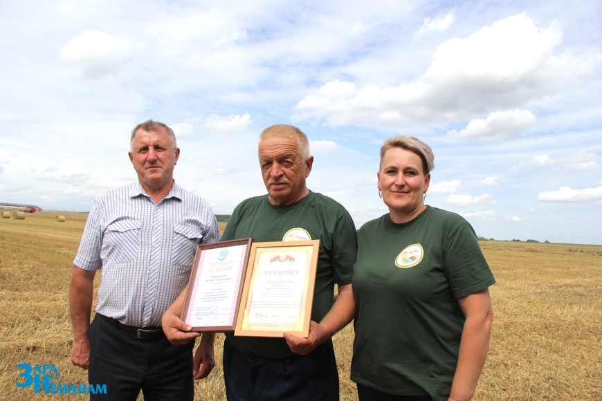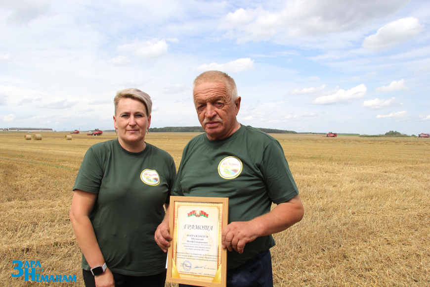 В сухую погоду комбайнеры «Черлёны» трудятся до полуночи. А вместе с ними и водители. Поэтому в сельхозпредприятии и много передовиков. В этот же день принимал поздравления и ещё один водитель – ветеран сельскохозяйственного производства Иосиф Обуховский. Во время прошлой уборки он перевёз 3302 тонны зерна, во время этой – уже больше тысячи тонн. Иосифа Генриковича поздравили, вручили награды и премии председатель районной профсоюзной организации работников АПК Виктор Метлюк, заместитель директора ОАО «Черлёна» по идеологический работе Наталья Богданец и председатель первичной профсоюзной организации Людмила Вилюнова.