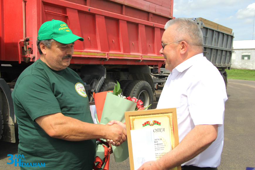 – На жатве вы трудитесь достойно, – сказал Андрей Антонович. – Первыми в районе перевезли две тысячи тонн зерна. Но убрано ещё только 30 процентов зерновых. Так что желаю достичь и пяти тысяч. Это вам под силу!