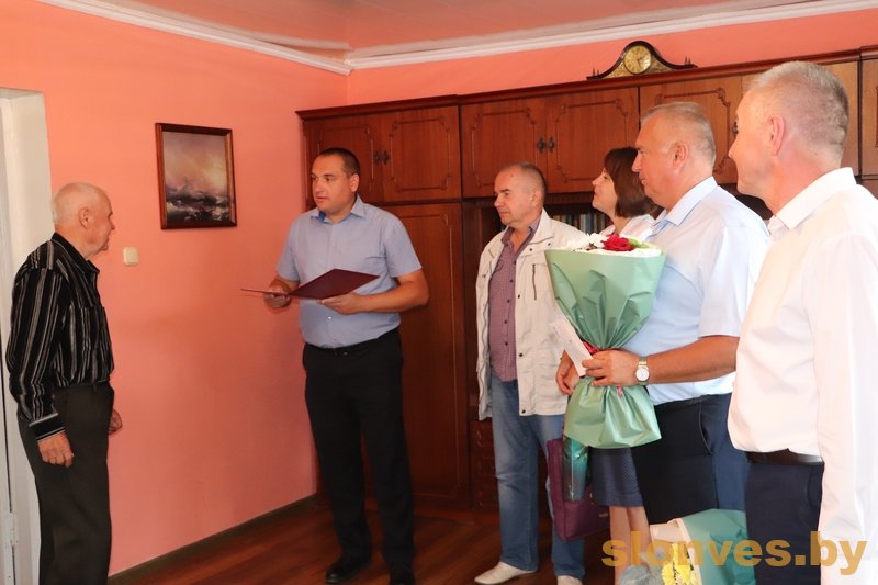 Для уважаемого именинника в день рождения звучало много поздравлений. Слова благодарности за труд и самые лучшие пожелания приехали сказать первый заместитель председателя райисполкома Виталий Марьянович Юровский, председатель районного комитета профсоюза работников АПК Александр Николаевич Зинченко, руководитель КСУП «Имени Дзержинского» Анатолий Казимирович Шейко, заместитель директора сельхозпредприятия Юрий Михайлович Снытков и управляющий делами Мижевичского сельсовета Мария Ивановна Нетецкая. Виталий Марьянович зачитал приветственный адрес председателя Слонимского райисполкома Геннадия Болеславовича Хомича и председателя районного Совета депутатов Олега Мечиславовича Таргонского.