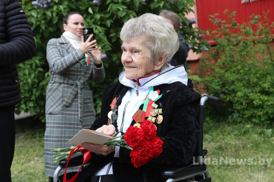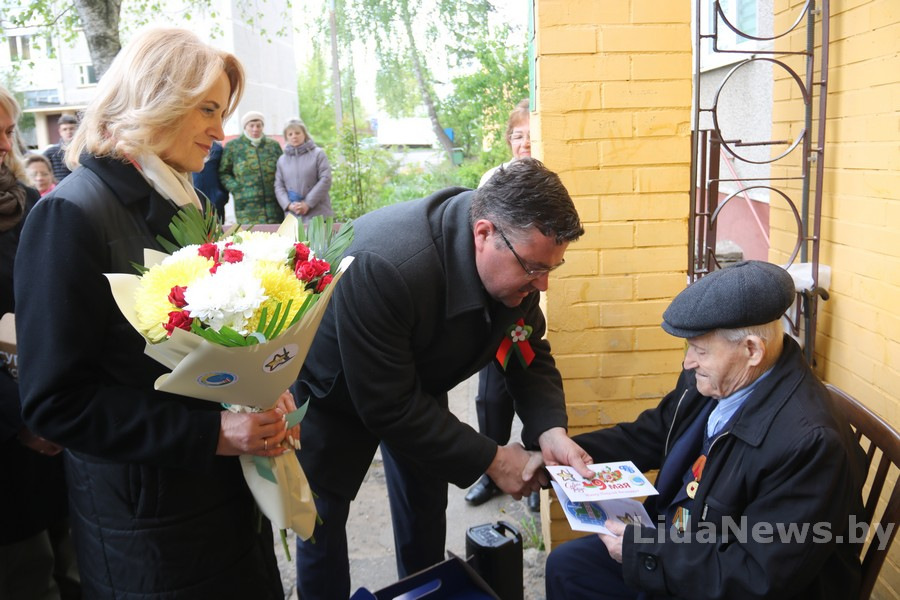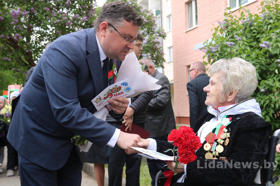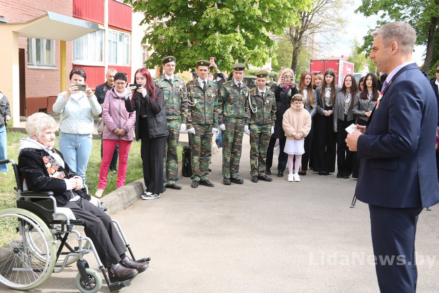 Во дворах домов №6 по бульвару князя Гедимина и №55 по улице Тухачевского было многолюдно. Поздравить ветеранов, жительницу блокадного Ленинграда Евгению Петровну Бартошевич и инвалида Великой Отечественной войны Николая Васильевича Мычко, с 80-й победной весной здесь собрались представители органов власти, предприятий и организаций, силовых структур, профсоюзов, учащиеся военно-патриотических классов СШ №6 г. Лиды имени Н. Б. Куконенко и военно-патриотического клуба «Патриот» СШ №8 г. Лиды имени В. Ф. Казакова, воспитанники детских садов №№33 и 34. Слова поздравлений виновников торжества звучали из уст председателя Лидского райисполкома Александра Версоцкого и председателя районного Совета депутатов Инессы Белуш. Военный комиссар Лидского района Виталий Докучаев вручил Евгении Петровне Бартошевич и Николаю Васильевичу Мычко медали «80 лет Победы в Великой Отечественной войне». Цветы и подарки преподнесли ветеранам представители предприятий и организаций Лиды и Гродно, силовых структур. Музыкальные подарки дарили ветеранам присутствующие на мероприятиях воспитанники детских садов и учащиеся школ. Праздничное настроение создавал военный оркестр воинской части 1234. Главным музыкальным произведением в его исполнении, безусловно, был «День Победы».
