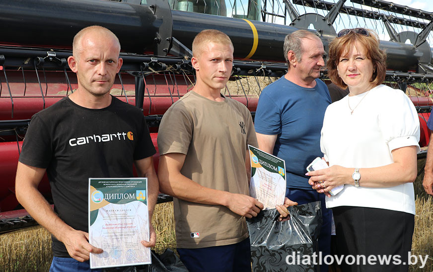 У гэты ж дзень старшыня Гродзенскай абласной арганізацыі Беларускага прафсаюза работнікаў дзяржаўных і іншых установаў Іван Язэпчык павіншаваў з высокім вынікам на жніве адзін з самых вопытных камбайнавых экіпажаў раёна, які працуе ў КСУП “Хвінявічы”. Гэта камбайнер Анатоль Марук і памочнік Мікалай Жынко. Механізатары паспяхова завяршылі ўборачную кампанію і прыступілі да сяўбы азімага рапсу.