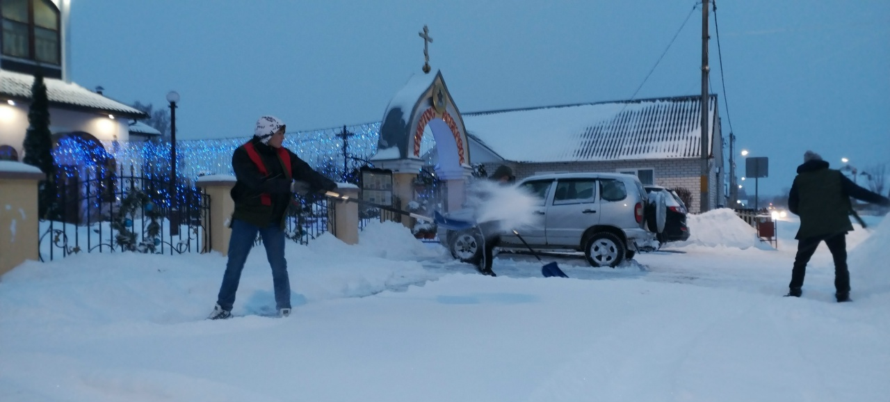 Участники волонтерского отряда «Твори добро» оказали помощь по расчистке снега на территории Храма младенца Гаврии́ла Белосто́кского в городе Ивье.