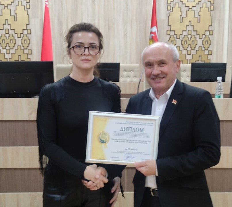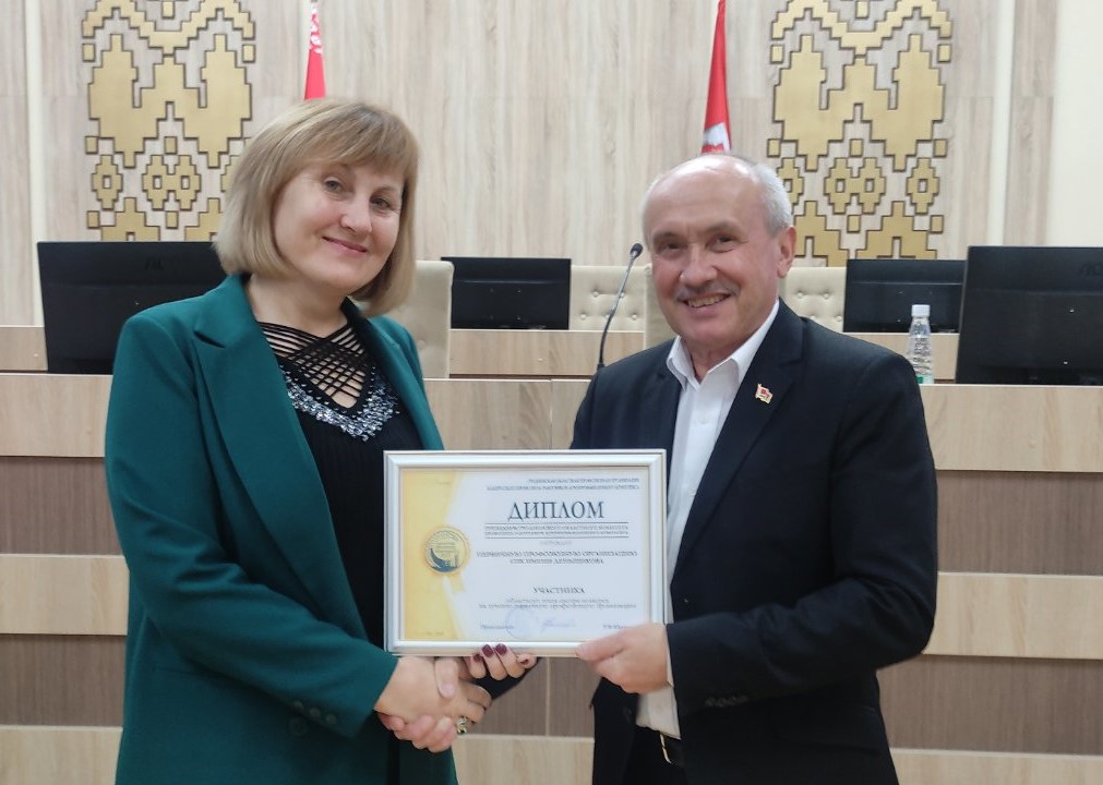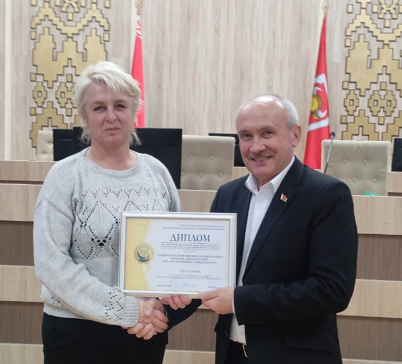 Так же председатель Гродненского обкома профсоюза работников АПК вручил Диплом призёру конкурса "Лучшая первичная профсоюзная организация" председателю профкома СПК "Озёры Гродненского района" Марте Гончарук.