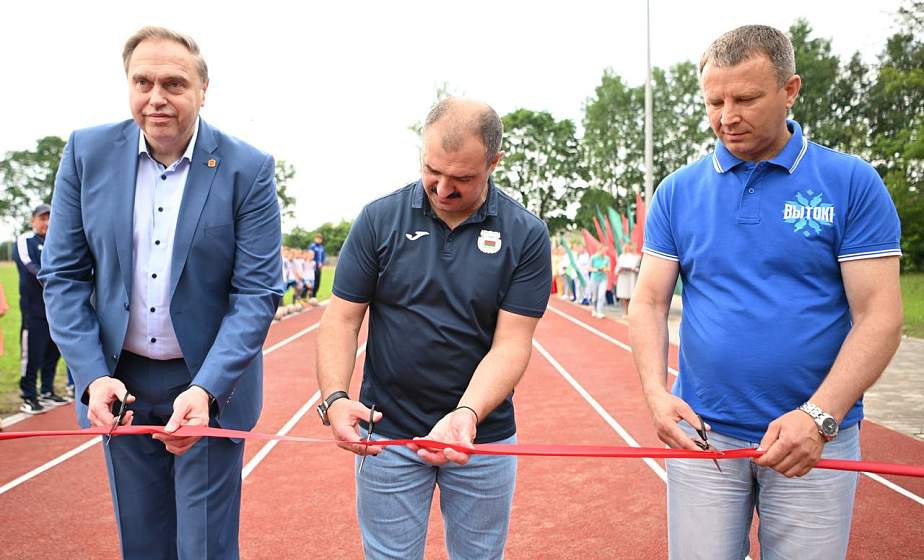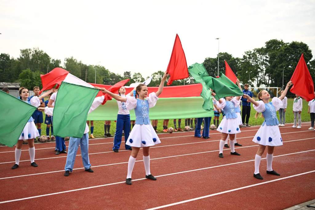В субботу Президент НОК Беларуси Виктор Лукашенко, министр спорта и туризма Сергей Ковальчук, председатель ФПБ Михаил Орда, председатель облисполкома Владимир Караник, председатель БФЛА Иван Тихон, руководство Слонимского района, почетные гости приняли участие в торжественной церемонии открытия нового стадиона.