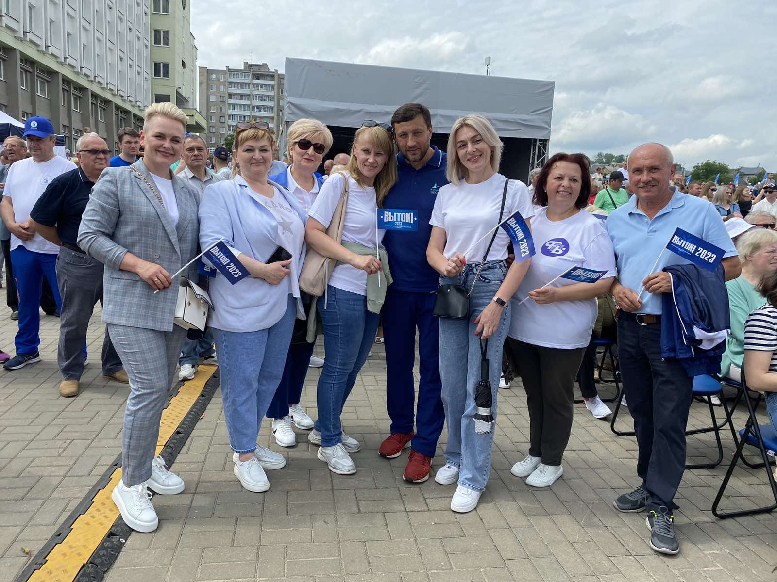 Нельзя не отметить, что профсоюзы Гродненщины приняли самое активное участие в этом грандиозном празднике. Председатели областных, а также районных отраслевых профсоюзных организаций во главе с председателем Гродненского областного объединения профсоюзов, членом Совета Республики Национального собрания Республики Беларусь Виктором Лисковичем приехали в эти дни Слоним. В составе делегации на мероприятии присутствовали профсоюзный лидер аграриев Гродненщины Ромуальд Юровский, а также председатель Слонимской районной организации профсоюза работников АПК Александр Зинченко.