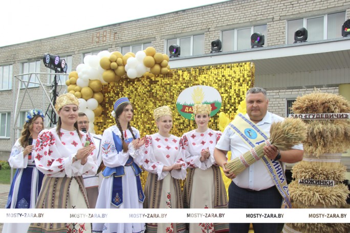 Так ярка, прыгожа і з размахам святкаваць умеюць толькі ў Гудзевічах. Кожны дажыначны абрад – і ўсё больш фантазіі, крэатыву, яскравых фарбаў. Так было і на гэты раз. Прыгожа і маштабна аформленая пляцоўка ў цэнтры аграгарадка і шчырая музыка вабілі да сябе людзей. У цэнтры занялі месцы па- святочнаму адзетыя, абвязаныя прыгожымі стужкамі ўдзельнікі жніва, кіраўнікі гаспадаркі і госці.