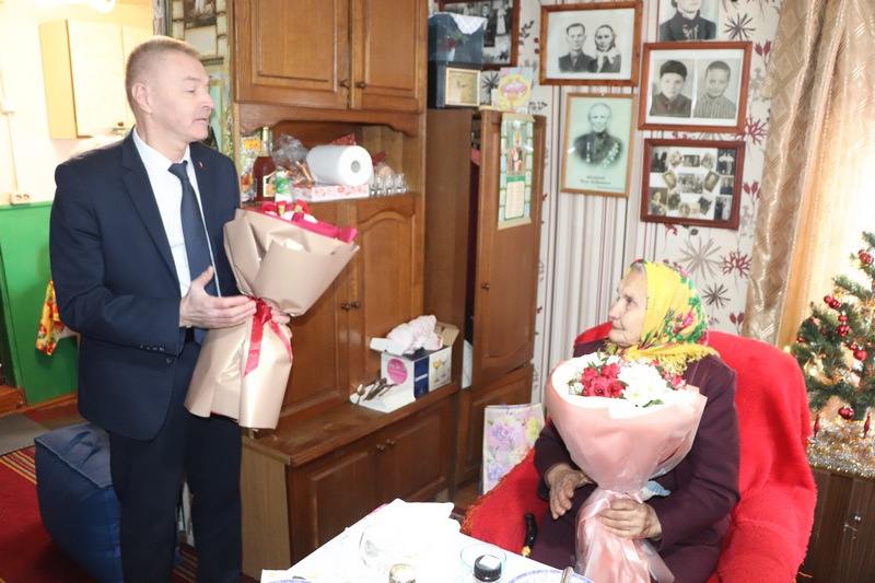 Светлана Яковлевна Скоморох в своем поздравлении отметила, что юбилей Евгении Ивановны совпал с проводимой в эти новогодние дни республиканской благотворительной акцией «От всей души», направленной на оказание поддержки и внимания пожилым людям. От имени Слонимского райисполкома и Слонимского районного Совета депутатов она подарила юбилярше цветы и подарки.