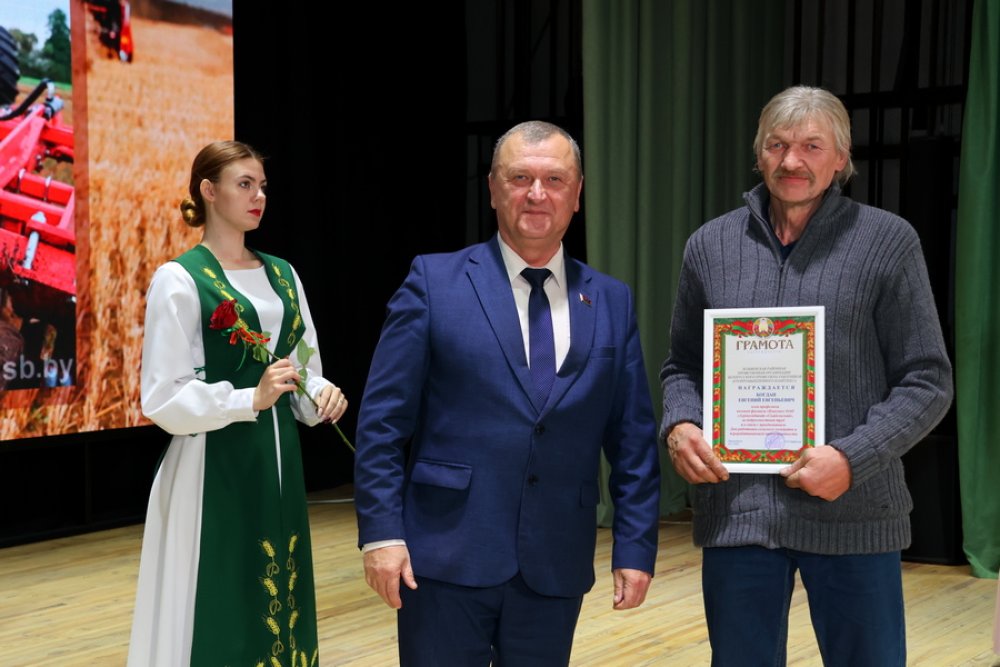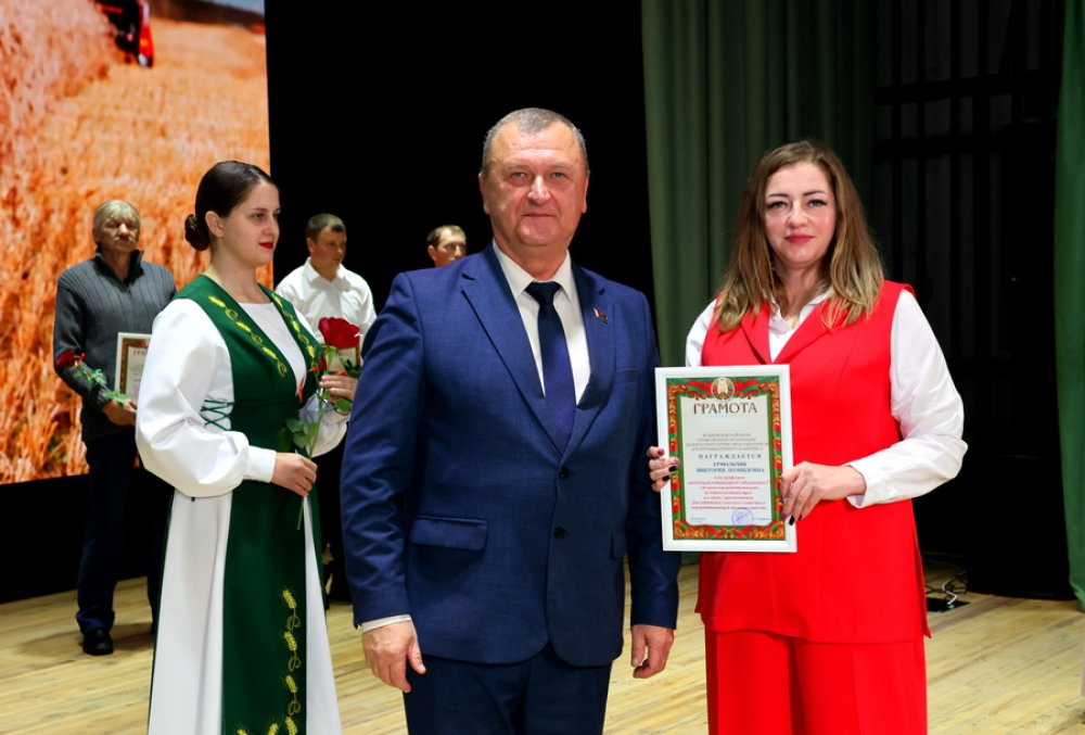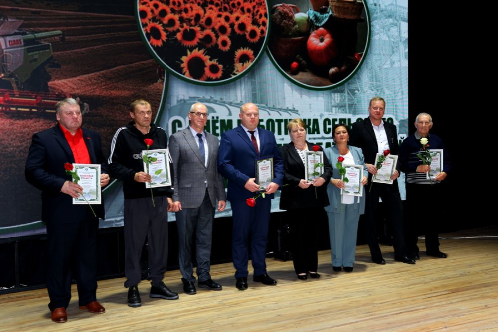 И даже погода не подвела. В этот солнечный осенний день свой профессиональный праздник отметили аграрии Зельвенщины. Масштабно, душевно, так сказать, по-семейному тепло! В центре культуры и народного творчества собрались передовики производства, ветераны труда аграрного сектора, представители власти и партнеры местных сельхозпредприятий. Поприветствовал всех председатель райисполкома Юрий Костоломов: – Отрасль сельского хозяйства занимает важное место в экономике, обеспечивая продовольственную безопасность страны. В этом зале присутствуют люди, которые самоотверженно работают на земле, трудятся на фермах. Ваше нелегкое дело достойно уважения и гордости. Спасибо за ваши заслуги и низкий вам поклон! Юрий Владимирович вручил заслуженные награды лучшим работникам зельвенских хозяйств. Поблагодарил коллег за собранный урожай и высокие показатели в животноводстве начальник управления сельского хозяйства и продовольствия райисполкома Сергей Сыско: – В закрома будет заложено 120 тысяч тонн зерна. Накопано 7,2 тысячи тонн картофеля. Почти 100 тысяч тонн собрано в нынешнем сезоне сахарной свеклы, что значительно больше, чем в прошлом году. Негативно повлияли климатические условия на кукурузу, тем не менее планируется намолотить более 31 тысячи тонн зерна. Подготовлена прочная кормовая база: 112 тысяч тонн сенажа, 3,9 тысячи тонн сена, 173 тысячи тонн силоса, что составляет 30,85 центнера кормовых единиц на условную голову скота (+0,5 ц к.ед. к 2024 году). За десять месяцев благодаря общим усилиям наших животноводов валовое производство молока достигло 674 725 центнеров. Средний удой составил 5 907 килограмм. Прослеживается положительная динамика и в мясном скотоводстве. За этот период произведено 59 646 центнеров говядины. Среднесуточный привес КРС доведен до 774 грамм. К поздравлениям присоединился председатель районного Совета депутатов, председатель районного отделения Белорусской партии «Белая Русь» Вадим Панасик. Теплые слова присутствующим адресовал профсоюзный лидер работников АПК Валерий Парфенчик. Пожелали дальнейших успехов и лидеры общественных объединений, руководители районных предприятий и партнеры. В подарок – праздничный концерт. В фойе центра порадовали зельвенцев и гостей поселка выставки от сельхозпредприятий района, а также дегустация продукции от «Беллакта» и «Слонимского мясокомбината».
