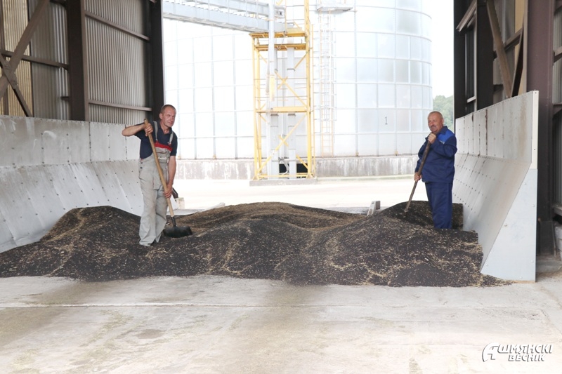Оператор зерносушильного комплекса Андрей Ботян и его помощник Дмитрий Рожанский работают не покладая рук. Специалисты уточняют, что при сушке рапса необходимо следовать технологии. Только тогда можно достичь максимального результата. Сушка семян рапса имеет свои особенности, по сравнению с зерном злаковых культур, и требует более мягкого режима. Влажные семена содержат большой процент масла и белка, поэтому имеют большой риск самовозгорания при несоблюдении температурного режима. Кроме того, рапс плохо переносит высокие температуры. При чрезмерном тепловом воздействии в семенах рапса происходят биохимические изменения, при которых свертывается белок, а также процессы прогорания масла становятся интенсивными.