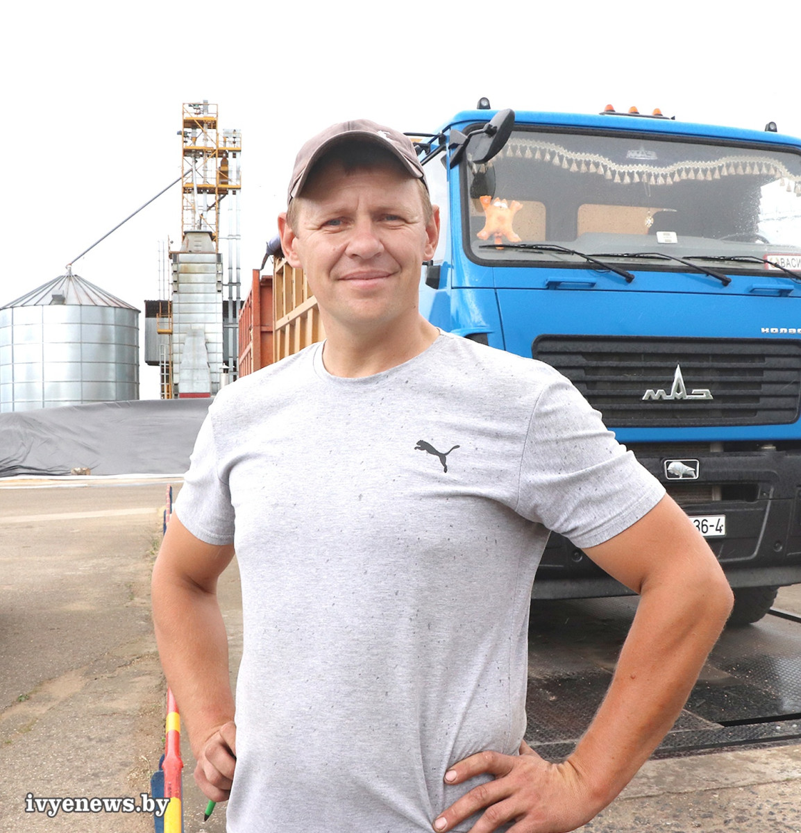 Среди водителей на перевозке зерна лидирующие позиции занимает Василий Воронюк (СУП» Лаздуны-Агро»), который первым в Ивьевском районе на автомобиле МАЗ 650108 перевез около 1800 т зерна: более 900 т зерновых и 884 тонны рапса. Василий Воронюк на перевозке зерна - пятый сезон, и все эти годы в лидерах. Был лучшим в районе в прошлом году. Автомобиль с табличкой на лобовом стекле «Василий» всегда заметен в страду. Если хороший день – норма 150 тонн зерна от комбайнов на зерносклад. Супруга работает бухгалтером в райкоме профсоюзов работников АПК, живет в Лаздунах, сыну 12 лет. Вместе с папой уже исколесил немало. Знатным механизатором и комбайнером был и отец передового водителя, занимавший лидирующие позиции в конкурсах механизаторов-пахарей в республиканских конкурсах. Зерно из отделения «Лаздуны» перевозится для просушки на зерносушильный комплекс - «амкодоровскую» зерносушилку, запущенную всего лишь вторую неделю. Петр Владимирович Касперович на «Амкодоре» осуществлял работы по обслуживанию зерносклада. Пшеницы продовольственной хозяйство уже сдало по госзаказу 792 тонны. За сутки на новом комплексе сушится 200 тонн зерна. В поле в отделении «Лелюки» работал на комбайне Анатолий Желдак, на прессовании соломы – Андрей Тешко. Сразу же после обмолота зерновых поля освобождаются от соломы. В районе эти работы проведены на 2103 га, в СУП «Лаздуны-Агро» - на 1010 га. Итак, первый тысячник (и почти уже двухтысячник) среди водителей на перевозке зерна в Ивьевском районе есть, ждем тысячника среди комбайнеров.
