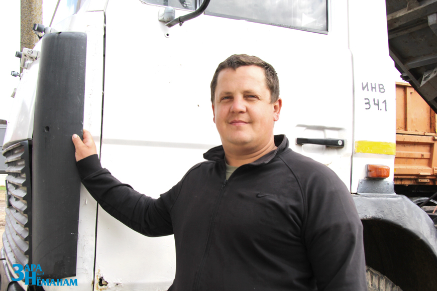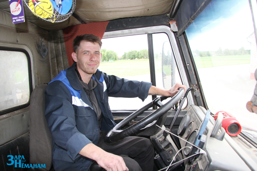 И ещё один представитель молодого поколения с утра до ночи накручивает километры в сельхозпредприятии на таком же стареньком МАЗе-5551 2007 года выпуска. Это Денис Олейник. И тоже старательно работает. Парень пока не женат, живёт с родителями в Струбнице. Рано утром вместе с ними идёт на мехдвор. Отец Виктор Чеславович работает механизатором, мама Наталья Иосифовна – сторожем. Получив права в Гродно, до армии работал на советских времен машине ГАЗ-53. В армии служил водителем-механиком в войсках ПВО, прошёл обучение, набрался опыта. И вот уже полгода трудится на МАЗе-5551. Ремонтировать помогал отец Виктор Чеславович. Он в технике разбирается хорошо. Так что у Олейников теперь семейный подряд. Скоро парень перевезёт тысячу тонн зерна, а у отца и мамы будет повод порадоваться за сына.