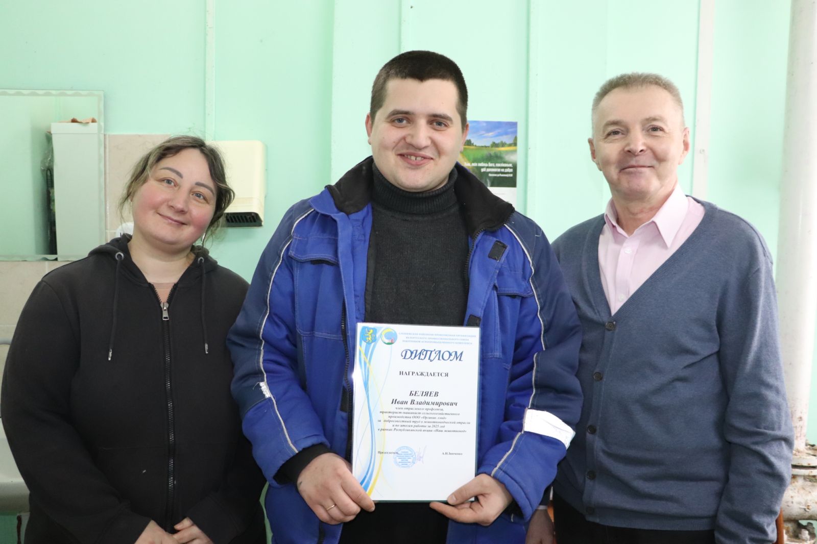 В животноводческой отрасли работают люди совершенно разных профессий. В том числе и механизаторы, что задействованы в подвозе и раздаче кормов, помогают сохранить порядок в коровниках и на территории комплексов, также вносят свою большую лепту в процесс производства молока и мяса. В рамках акции «Наш животновод» эти очень важные для отрасли работники также получают свою «минуту славы». Их труд значим, он требует большой ответственности. Это подчеркнул председатель районного комитета профсоюза работников АПК Александр Николаевич Зинченко во время чествования замечательных тружеников ООО «Органик лэнд». Среди награждаемых как раз оказался молодой механизатор сельхозпредприятия Иван Владимирович Беляев, который уже успел себя отлично проявить. В ООО «Органик лэнд» он пришел в 2021 году. Городской житель Иван Владимирович после окончания Слонимского государственного колледжа осознанно выбрал сельское хозяйство: работа интересная, оплата труда достойная, график устраивает. Хотя надо сказать, режим работы отличается от привычного. На работе нужно быть уже в 5 утра, чтобы на современном самоходном кормораздатчике отправиться заполнять кормовые столы на МТК «Верболоты». Зато к обеду механизатор уже как правило свободен. Живет он в Слониме, с женой Татьяной они воспитывают двоих детей. Незаменимым человеком на МТК «Деревная» является тракторист-машинист Сергей Алексеевич Кисель. Он и его железный конь, а работает опытный специалист на погрузчике, здорово облегчают труд животноводам МТК. Сергей Алексеевич местный житель и после школы выбрал жить на малой родине, трудиться в родном хозяйстве. Здесь он 1996 года. Причем задействован не только в животноводстве, специалист-универсал одинаково хорошо справляется и с полевыми работами. Слесарь ООО «Органик лэнд» Сергей Николаевич Сетько выполняет обслуживание доильного оборудования на МТК «Верболоты». Перед ним стоит такая же задача, как и перед животноводами, операторами машинного доения – выпустить продукцию максимально высокого качества. Свою работу Сергей Николаевич знает, это подтверждают коллеги и руководство сельхозпредприятия. Оператор машинного доения МТК «Деревная» Наталья Станиславовна Трубило прекрасно знает, какое значение для коллектива комплекса имеет лично ее отношение к своим обязанностям. Сорт молока, а значит и его цена напрямую зависит от соблюдения технологии доения. Опыт, она более 20 лет в сельскохозяйственной отрасли, и желание трудиться помогают достигать желаемого результата. Каждому из животноводов Александр Николаевич Зинченко сказал спасибо за труд и вручил денежные подарки. Слова благодарности высказала также председатель первичной профсоюзной организации сельхозпредприятия Анна Ивановна Морозевич. Ольга КУРЬЯН