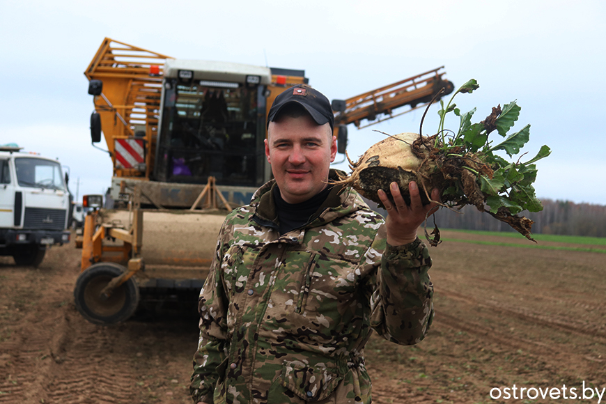 – Па-першае, з нямецкай мовы «кляйн» перакладаецца «маленькі». Па-другое, у параўнанні з сучаснымі буракаўборачнымі комплексамі ён і сапраўды невялікі. На гэтым агрэгаце працую 6-ты сезон, а камбайну пайшоў 19-ты год. Некалі наша прадпрыемства перакупіла яго, зразумела, не новым, у Шчучынскага рамонтнага завода. Хоць па мерках тэхнікі «малыша» можна лічыць пенсіянерам, служыць ён спраўна. Кожны механізатар і вадзіцель скажа, што транспарт адны рукі любіць, – лічыць Віталій. – Капаць буракі сёлета дапамагаў КСУП «Гервяты» і «Варняны». А яшчэ адзін наш работнік Дзмітрый Юрчык на агрэгаце «мыш» (так між сабой называем буракаўборачны пагрузчык) быў задзейнічаны на іх падачы ў транспарт. Надышла чарга і пра свой ураджай паклапаціцца: пад цукровікі ў сельгастэхніцы сёлета адвялі 165 гектараў, толькі на гэтым полі іх 60. За дзень у сярэднім убіраю караняплоды з 10-ці гектараў. За некалькі дзён, думаю, управімся.
