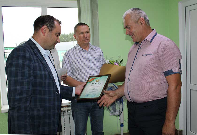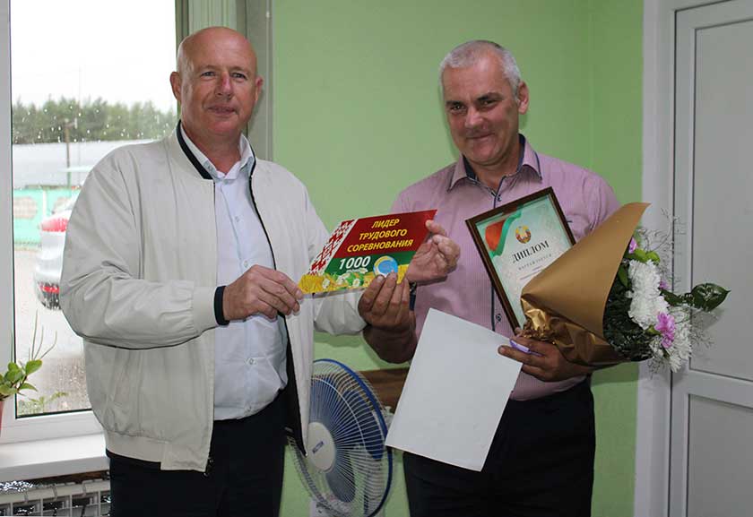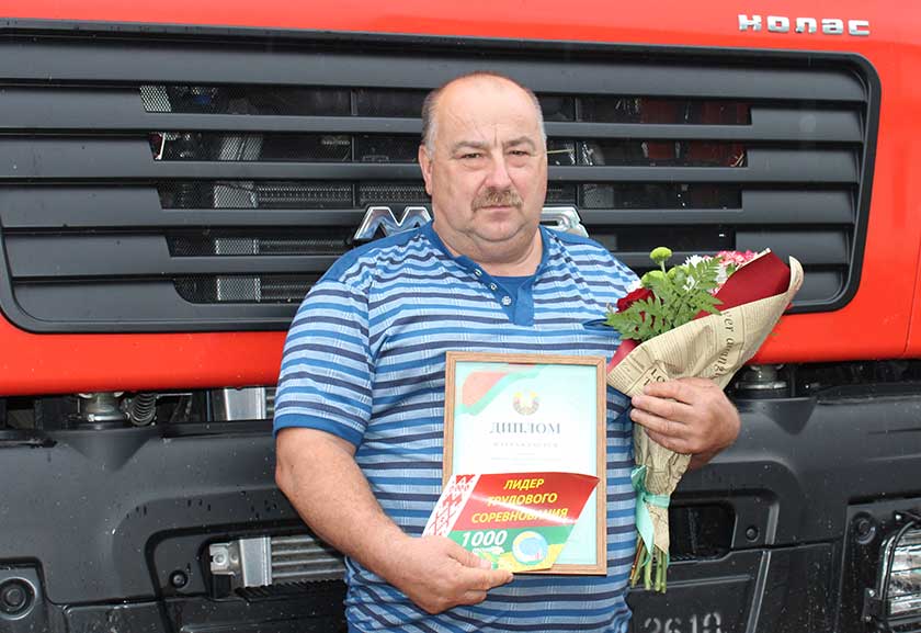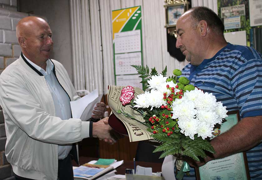 – Рады павіншаваць вас з запаветнай лічбай, – звярнуўся да тысячніка Віталій Шулейка. – У вас трэці вынік у раёне, а ў катэгорыі “без прычэпа “ – першы. Упэўнены, што новая тэхніка павінна радаваць адсутнасцю паломак, далейшых вам поспехаў.